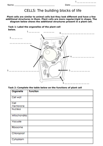 Plant Cells Worksheet Teaching Resources